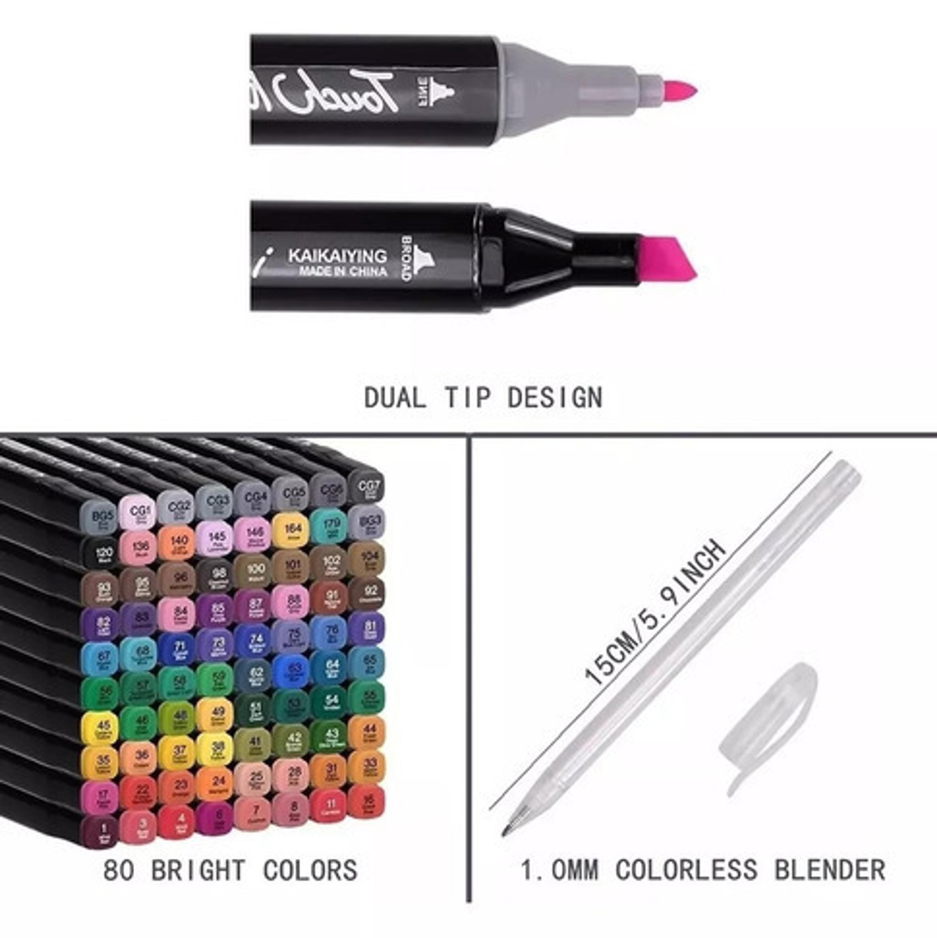 Set 80 Marcadores De Alcohol Plumones Lapices Marcadores De Colores Plumon Doble Punta Permanentes